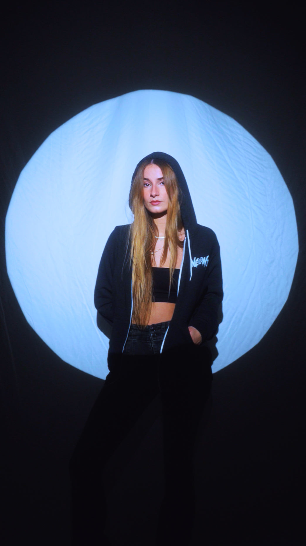 This zip up hoodie features a Neoni logo on the front left chest as well as a large Neoni graphic on the back.